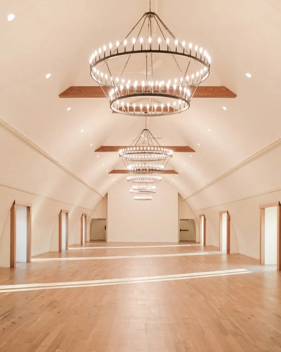 We have on-site parking (150 spaces), handicap accessibility, 21-foot ceilings with 6-foot chandeliers, heating and cooling, european style gardens, swanky outdoor gas fire pits with cozy seating, two custom bars and a stage. We also provide bridal/groom suites that are fully furnished, catering quarters with refrigeration + prep areas, white oak hardwood floors, Juliet balconies overlooking the gardens and apple orchards, indoor/outdoor ceremony/cocktail hour options, and more! Our prices are affordable and there are no hidden fees. Our main historical building is over 6,000 square feet and has one of the most unique rooflines in Western Michigan. The Parlor is over 5,000 square feet.